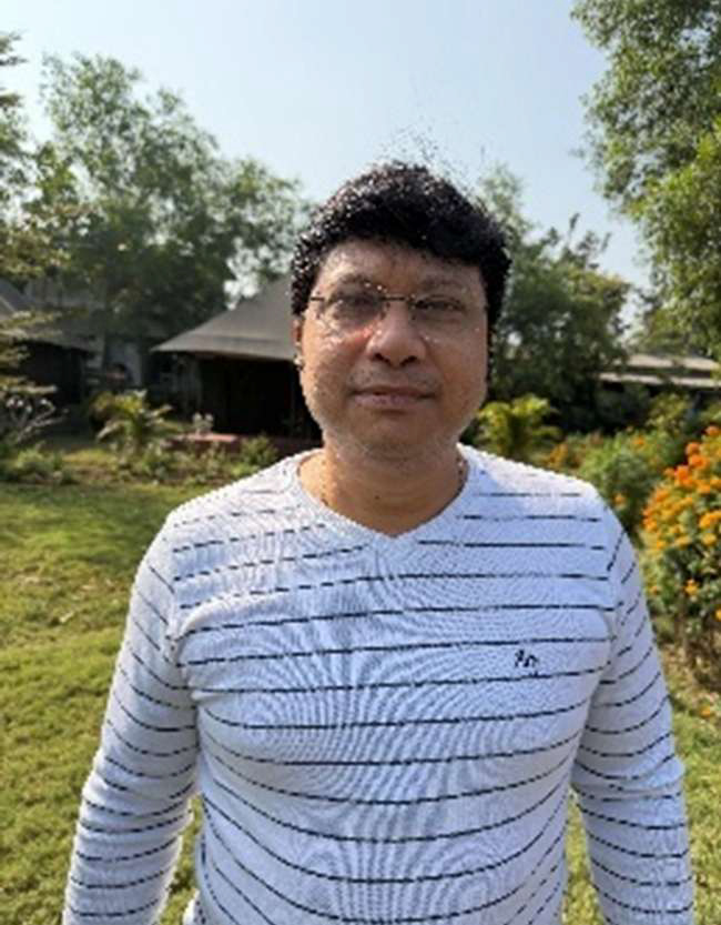 মুড়ি মাখা, ভেজ পকোড়া আর চা নিয়ে জমে গেছিল আড্ডা। শান্তনুর নিষেধাজ্ঞা মাথায় রেখে রাজনৈতিক আলোচনা ইঅ্যাকদম হয় নি। তবে অন্য আলোচনার মধ্যে বেশ হিট করে গেছিল ভূত আর ভূতের ভয় সংক্রান্ত আলোচনা। কাছেই বেগুনকোদর রেল ষ্টেশন। হন্টেড স্টেশন বলে এর একটা খ্যাতি বা কুখ্যাতি আছে। গুজব ডালপালা মেলে ছড়িয়েছে বেশ ভালই। অনেকেই নানান গল্প বলে সোশ্যাল মিডিয়ায়। ভূত দেখতে বা তেনাদের অস্তিত্ব পরখ করতে আসেন অনেকেই। যদিও রিসর্টের কর্মচারীরা পাত্তাই দিলেন না ওসব গালগল্পে। স্রেফ উড়িয়ে দিলেন। কিন্তু উড়িয়ে দিতে পারে নি আমাদের বিশ্বরূপ। প্রবল ভূত প্রেমী সেই বন্ধুটি সমানে তেনাদের পক্ষ নিয়ে তর্ক চালিয়ে যাওয়ার সময় বিশ্বজিৎ চেয়ার ছেড়ে উঠল। গায়ে নীল হুডি। হুডির সামনে লাল সাদা চকরাবকরা আঁকিঝুঁকি। চকচকে টাক কিঞ্চিৎ প্রকাশ্যে। গিয়ে দাঁড়ালো লাল আলোর নিচে। উদেশ্য, বাটি থেকে মুড়ি নেওয়া। নিলো। এবং নেওয়ার সময় দাঁত বার করে হাসল। দাঁতে, টাকে আর চশমায় লাল আলোর রিফ্লেকশন। ছবি উঠল।
